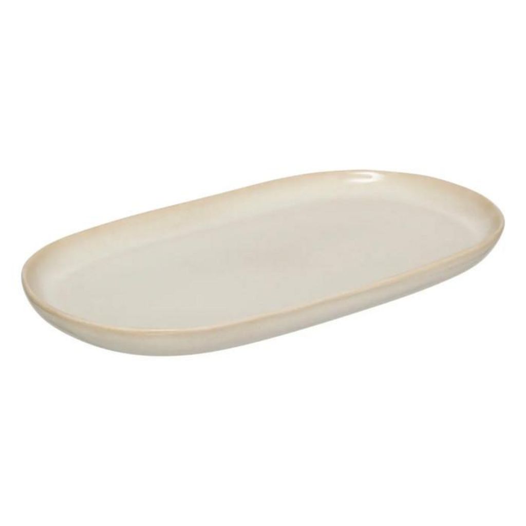 Informations Techniques : Dimensions : L. 30 x l. 18 x H. 2,6 cm Matière : Grès Spécificités : Élégant & Utile Plat de présentation Design ovale Poids : 0,76 kg Couleur : Beige