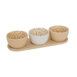 Informations Techniques : Dimensions : L. 30 x l. 10 x H. 6 cm Matières : Grès & Bambou Spécificités : Pratique & Utile Service apéritif 4 pièces Imprimé léopard bicolore Contient : 3 x coupelles rondes 1 x plateau ovale Poids : 0,83 kg Couleur : Multicolore