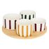 Informations Techniques : Dimensions : D. 25 x H. 7,5 cm Matières : Bambou & Grès Spécificités : Coloré & Utile Set apéritif 5 pièces Imprimé aux rayures colorées Contient : 4 x coupelles 1 x plateau Compatibilités : Lave-vaisselle et micro-ondes (coupelles uniquement) Poids : 1,24 kg Couleur : Mult
