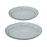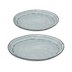 Informations Techniques : Dimensions : Assiettes plates : D. 26,5 cm x H. 2,7 cm Assiettes à dessert : D. 21,5 cm Matière : Grès Spécificités : Pratique & Moderne Service de table 12 pièces Contient : 6 assiettes plates 6 assiettes à dessert Forme ronde Chaque produit est unique, de ce fait des var