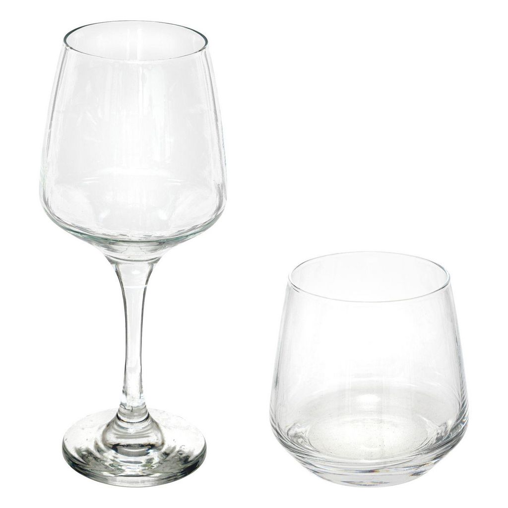 Le service de verres Elaya est idéal pour toute occasion. Composé de 6 gobelets bas et 6 verres à vin, il offre un ensemble complet et élégant pour vos repas et réceptions. Fabriqués en verre et transparents, ils se distinguent par leurs formes sobres et intemporelles, apportant une touche raffinée