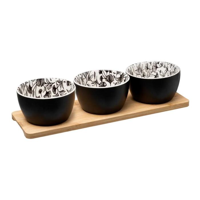 Set Apéritif 4 Pièces White Floral 31cm Noir