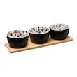Informations Techniques : Dimensions : L. 31 x l. 10 x H. 10 cm Coupelle : L. 10 x l. 6,5 cm Plateau : L. 10 x l. 31 cm Matière : Faïence Spécificités : Pratique & Utile Set Apéritif 4 Pièces Passage au Lave-Vaisselle & au Micro-Ondes (coupelles) Contact Alimentaire Poids : 0,83 kg Couleur : Noir