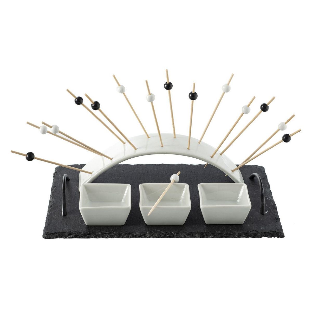 Servez avec goût vos apéritifs grâce à ce set au mélange de porcelaine et ardoise. Sobriété et élégance, seront au rendez-vous.