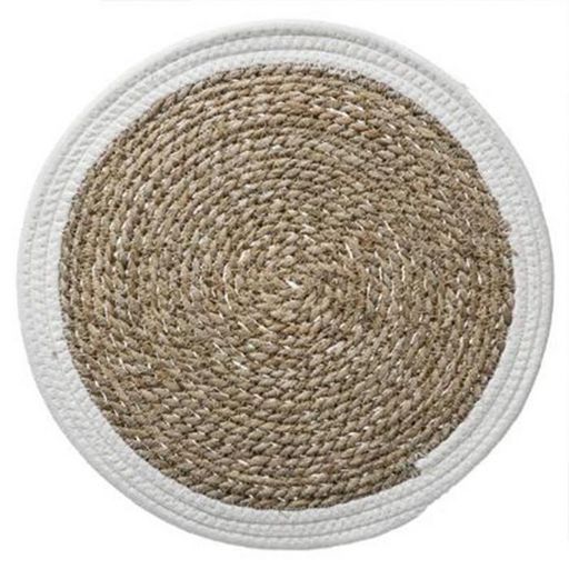 Informations Techniques : Dimensions : D. 38 x H. 0,5 cm Matières : Roseau & Coton Spécificités : Pratique & Utile Set de Table design Forme Ronde Bicolore Facile d'entretien & d'utilisation Couleur : Blanc & Naturel