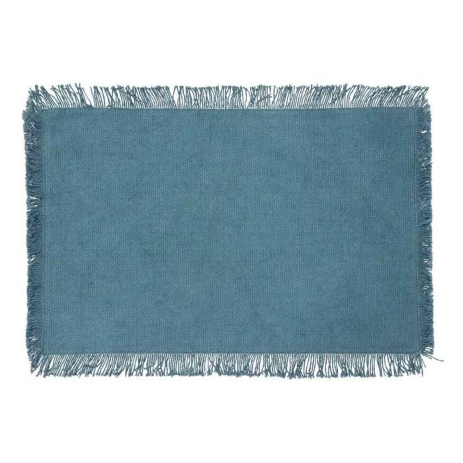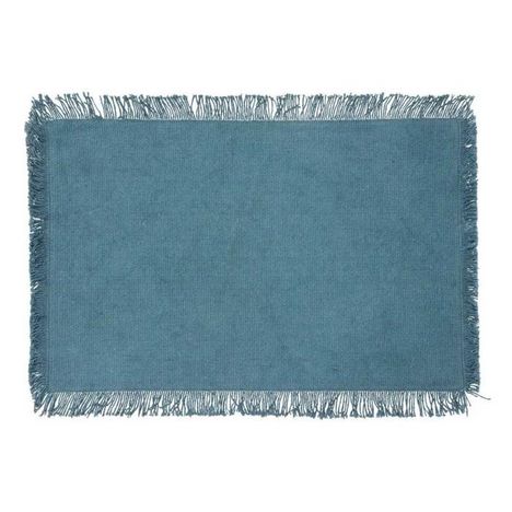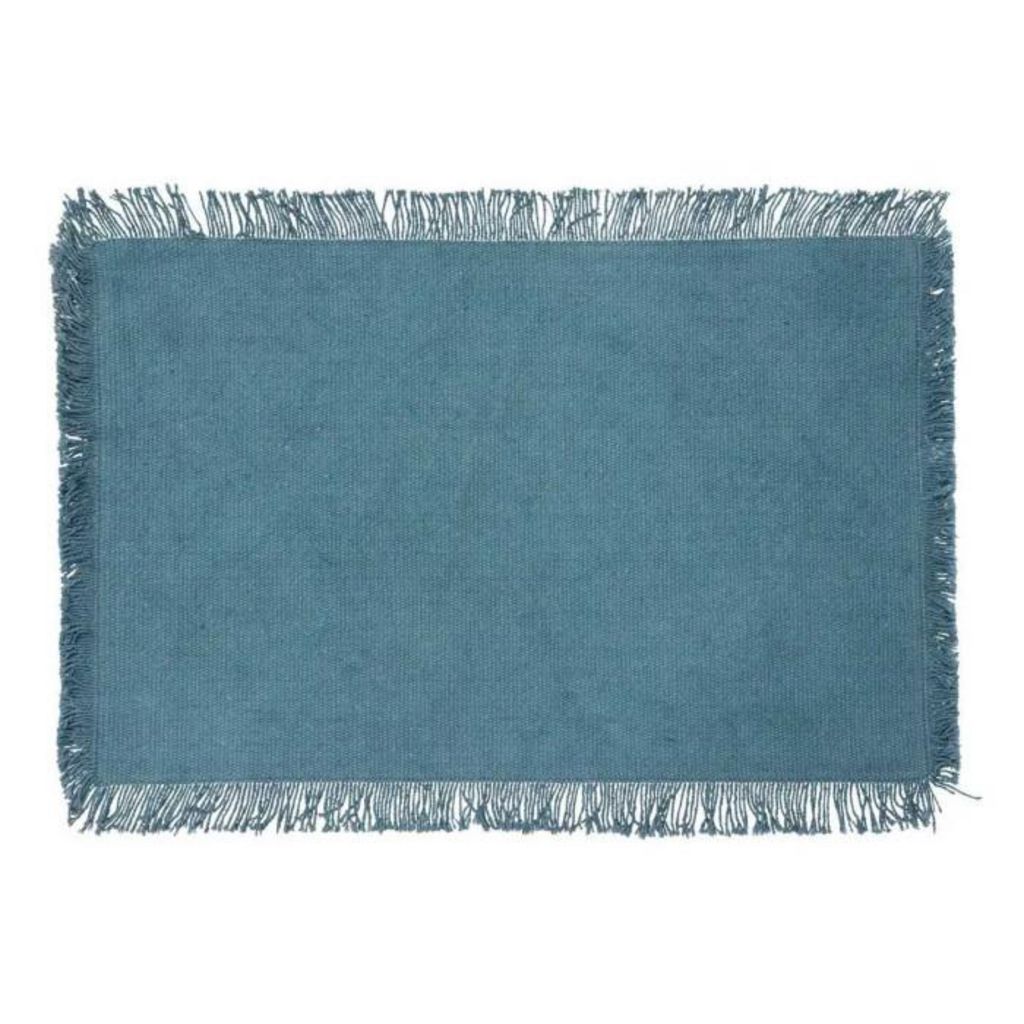 Informations Techniques : Dimensions : L. 45 x l. 30 x H. 0,3 cm Matière : Coton Spécificités : Pratique & Utile Set de Table Forme Rectangulaire Avec Franges Poids : 0,1 kg Couleur : Bleu Canard
