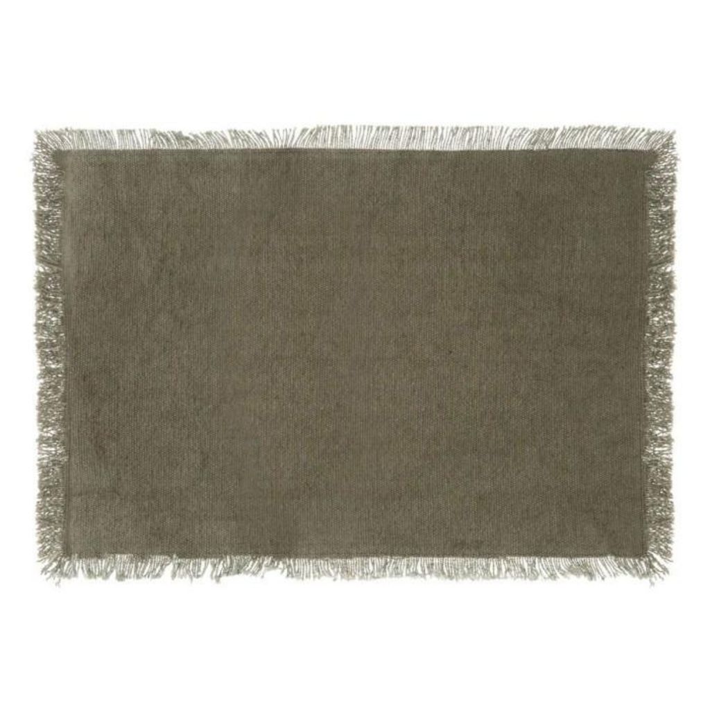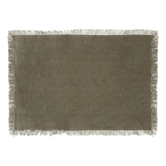 Informations Techniques : Dimensions : L. 45 x l. 30 x H. 0,3 cm Matière : Coton Spécificités : Pratique & Utile Set de Table Forme Rectangulaire Avec Franges Poids : 0,8 kg Couleur : Vert Kaki