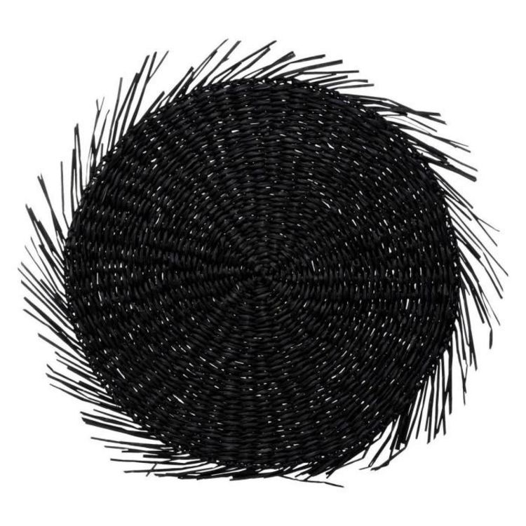 Informations Techniques : Dimensions : D. 40 x H. 0,6 cm Matière : Roseau Spécificités : Pratique & Utile Set de Table Forme Ronde Avec Franges Poids : 0,19 kg Couleur : Noir