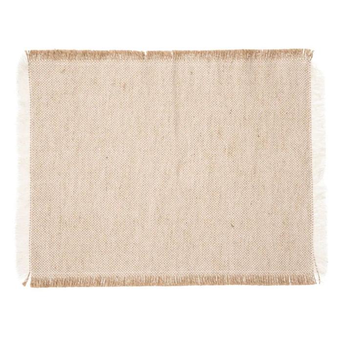 Informations Techniques : Dimensions : L. 45 x l. 30 x H. 0,5 cm Matières : Jute & Coton Spécificités : Pratique & Utile Set de table Avec franges Forme rectangulaire Poids : 0,08 kg Couleur : Beige