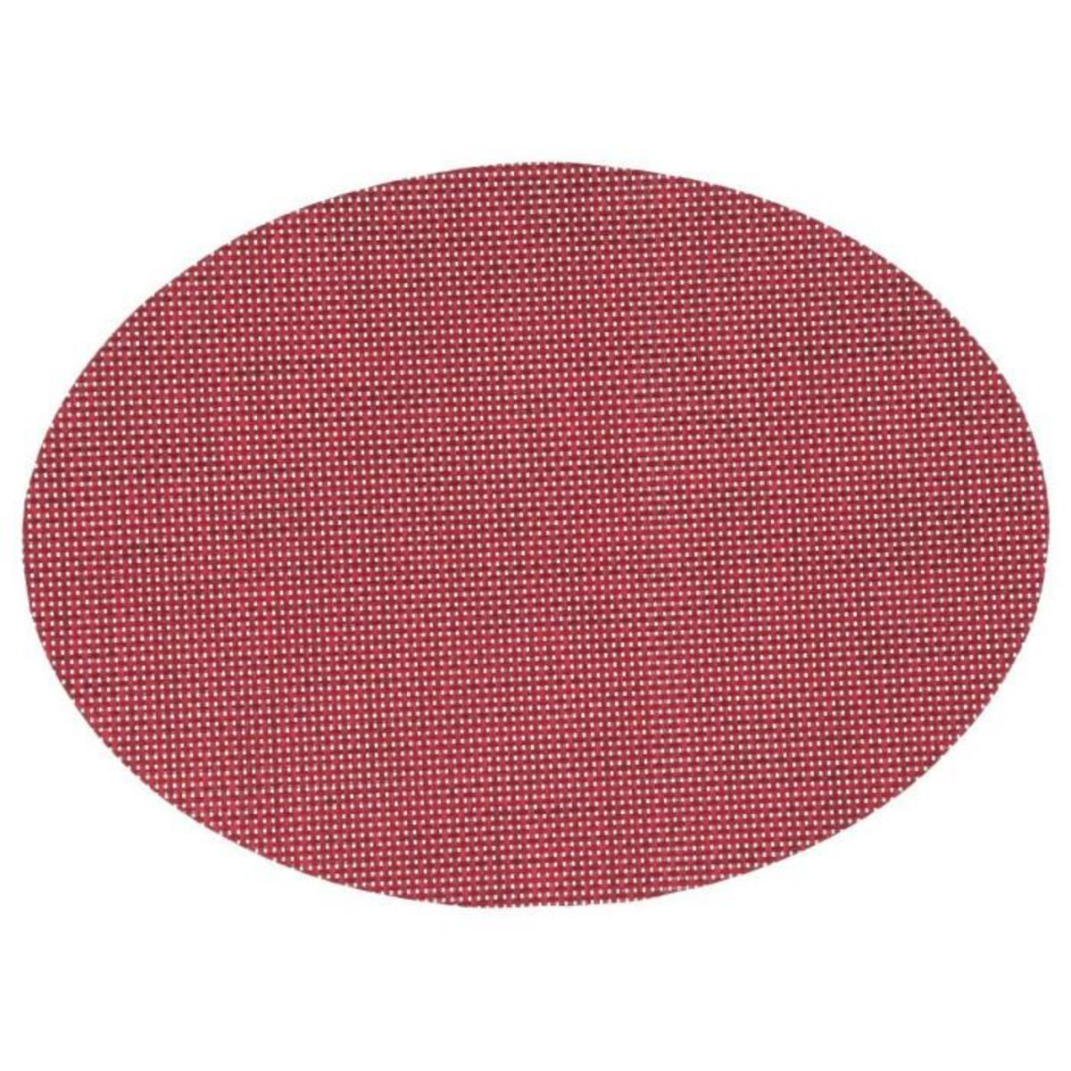 Informations Techniques : Dimensions : L. 48 x l. 35 x H. 0,09 cm Matières : 70% PVC & 30% Polyester Spécificités : Pratique & Utile Set de table ovale Facile d'entretien Poids : 0,09 kg Couleur : Rouge