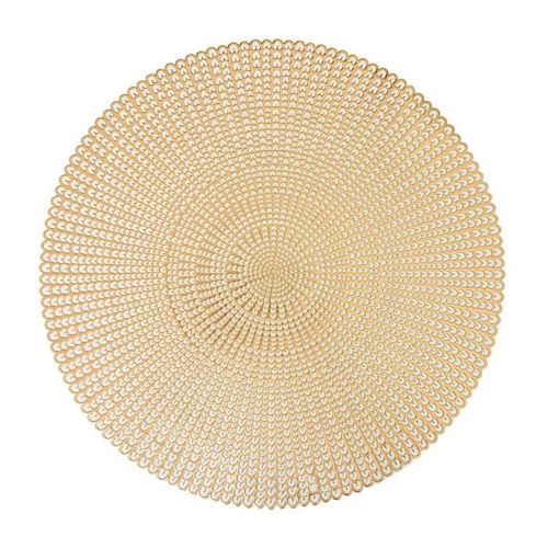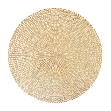 Informations Techniques : Dimensions : D. 41 x H. 0,1 cm Matière : PVC Spécificités : Pratique & Utile Set de Table Forme Ronde Poids : 0,112 kg Couleur : Or