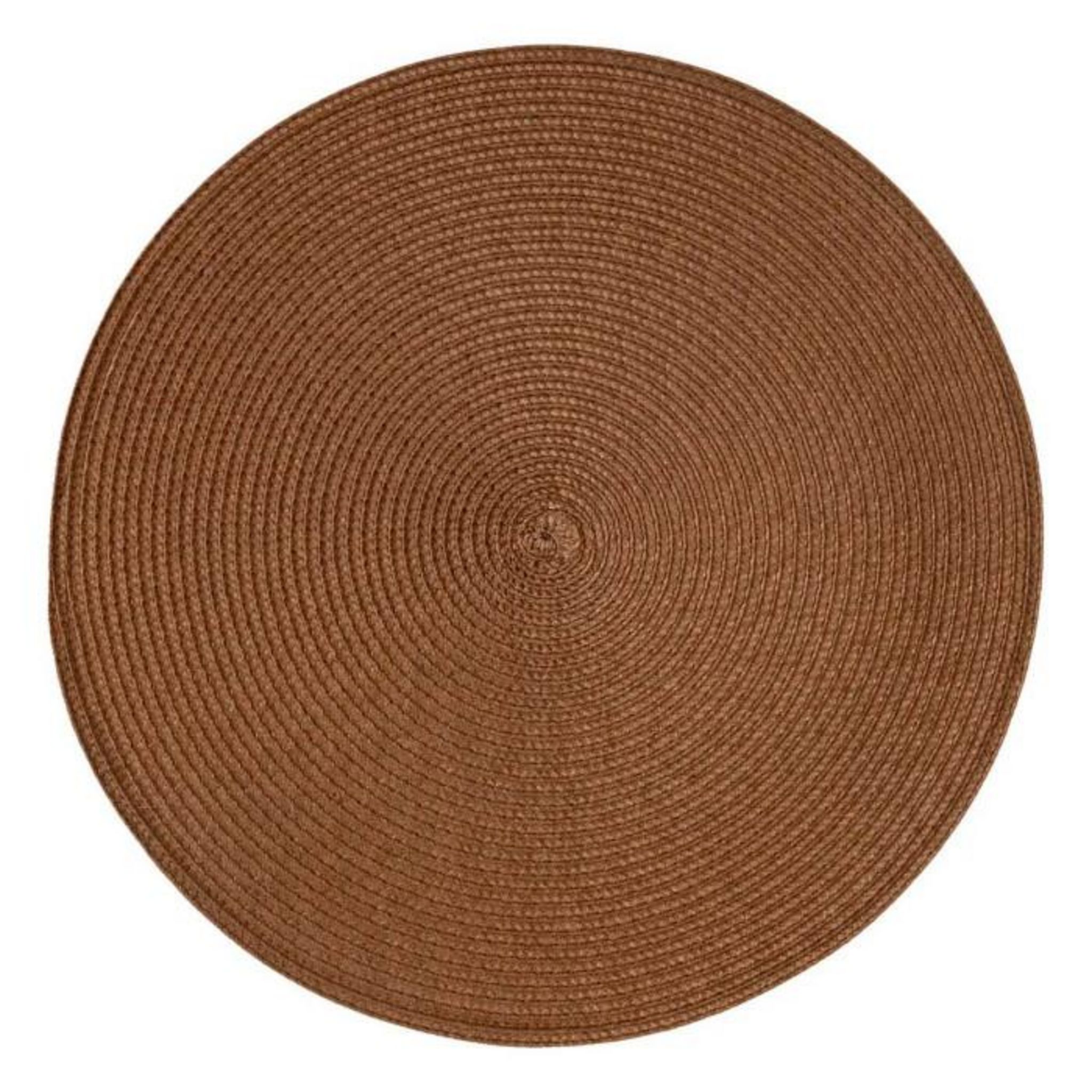 Informations Techniques : Dimensions : D. 38 cm Matière : 100% Polypropylène Spécificités : Déco & Utile Set de table rond tressé Se nettoie d'un simple coup d'éponge Poids : 0,06 kg Couleur : Camel Foncé