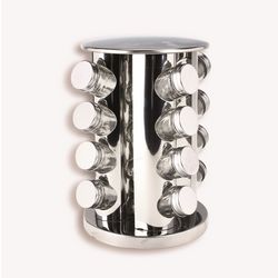 Rangez et retrouvez toutes vos épices en un seul geste avec ce pot à épices en inox tournant. Livré avec 16 pots en verre transparent pour profiter de la beauté visuelle de toutes vos épices.