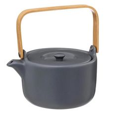 Informations Techniques : Dimensions : D. 14,1 x H. 8,5 cm Produit packagé : L. 14,5 x l. 10,5 x H. 15 cm Matières : Céramique & Bambou Spécificités : Tendance & Moderne Théière design Filtre inclus Anse en bambou Contenance : 80 cl Poids : 0,68 kg Couleur : Bleu Gris