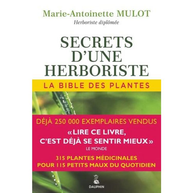 Un altique réédité avec cette nouvelle édition : 315 plantes médicinales sont décrites avec leur composition, leurs vertus thérapeutiques et leurs modes d'utilisation. Et complétée de 77 planches couleurs pleine page provenant du codex de 1937, dernier ouvrage illustré de la Pharmacopée Française. Secrets d'une herboriste est le témoignage de Marie-Antoinette MULOT, herboriste diplômée de la faculté de Pharmacie de Montpellier, et le testament d'une femme qui a consacré sa vie aux plantes. Forte de 315 plantes médicinales pour 115 maladies courantes, cette bible des plantes reste un document exceptionnel. Aujourd'hui plus que jamais son livre est d'actualité, le renouveau d'intérêt que nous portons à la connaissance des plantes, à leur utilisation pour notre confort de vie, ainsi que pour soulager ou même guérir quantité de petits maux, en font une vedette en la matière.