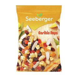 Ingrédients : Fruits en proportion variable (raisins secs sultanines, raisins secs, chips de noix de coco séchés, papayes, NOIX DE CAJOU, AMANDES blanchies, ananas, mangues, pommes en dés), sucre, acidifiant : acide citrique ; huile de coton, huile de tournesol, antioxydant : DISULFITE DE SODIUM.