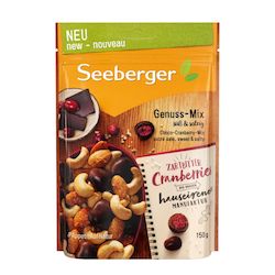 Dans notre propre atelier de chocolat, les cranberries fruitées et acidulées du Canada sont soigneusement enveloppées dans leur manteau croquant de chocolat noir belge. L'association unique de cranberries amères, de noix de cajou et d'amandes au miel et au sel fait du mélange Seeberger une expérience gustative particulière pour tous les fans de noix et de chocolat.