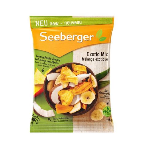 Ingrédients : Morceaux d’ananas séchés (35 %), morceaux de mangues séchés (34 %), chips de noix de coco séchées (15 %), tranche de banane (8 %), huile de coprah, sucre, fécule de pomme de terre, antioxydant : disulfite de sodium ; arôme naturel.