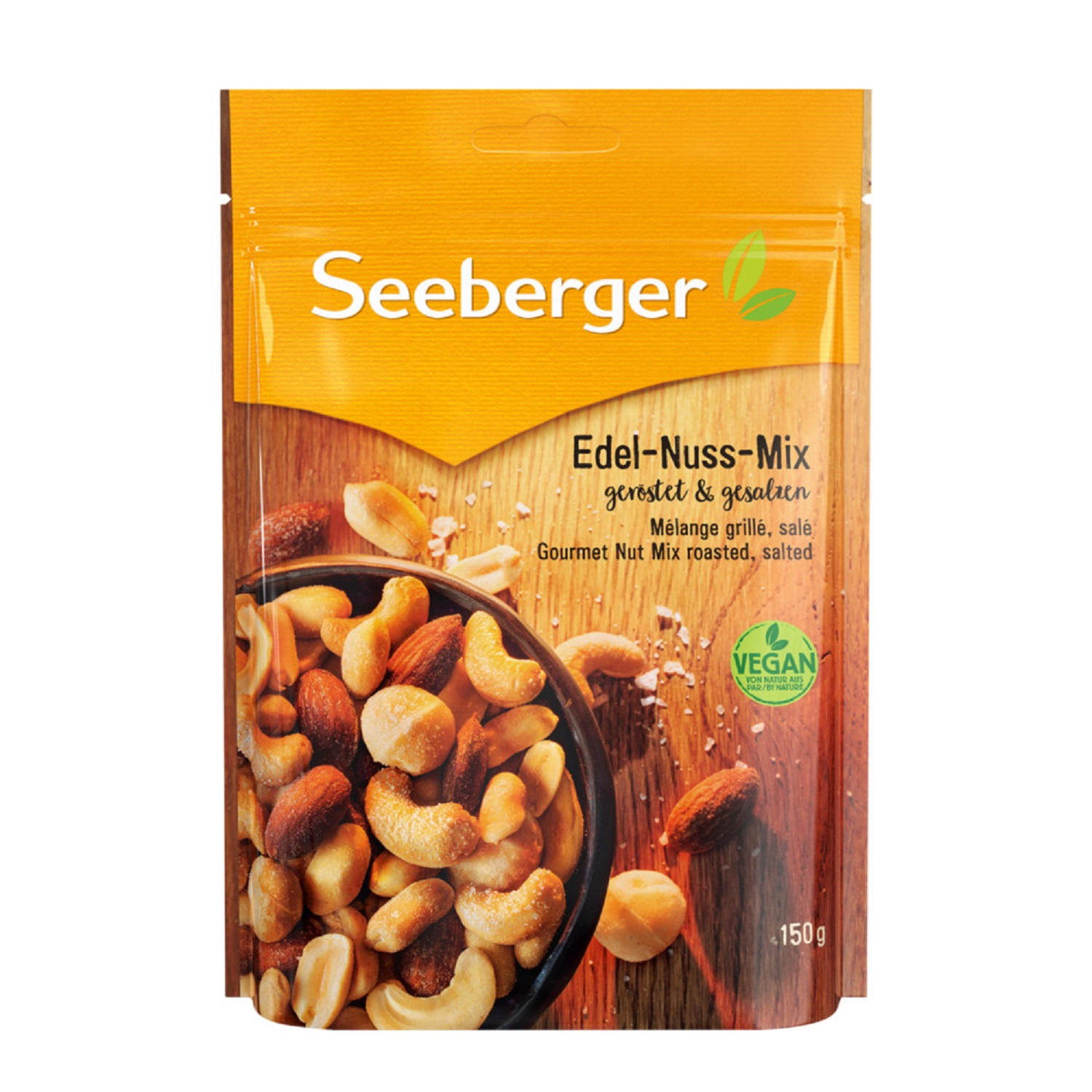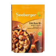 Ingrédients : Fruits à coque en proportion variable (cacahuètes, noix de cajou), amandes, noix de macadamia (10 %) , sel, huile de colza, huile de tournesol, extrait de levure, sucre, fumée, arôme de fumée, arôme.