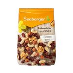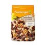 Ingrédients : Fruits à coque en proportion variable (noisettes décortiquées, amandes blanchies, noix de cajou), raisins secs, cerneaux de noix (7,5 %), huile de tournesol.