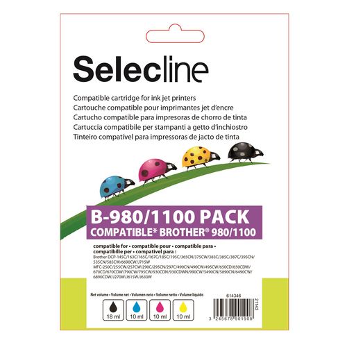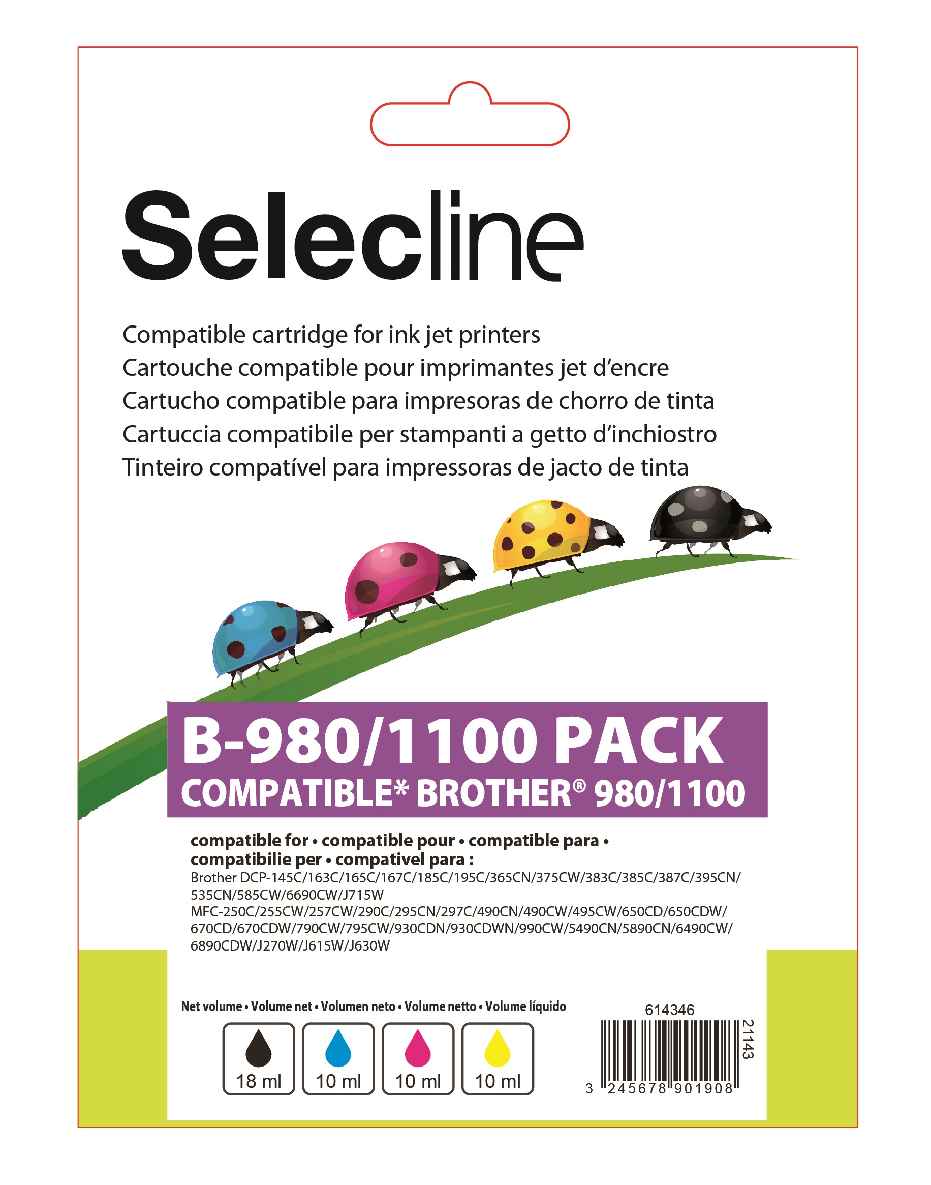 Cartouches d'encre SELECLINE compatibles avec les imprimantes BROYHER 980/1100. Multipack noir / couleurs