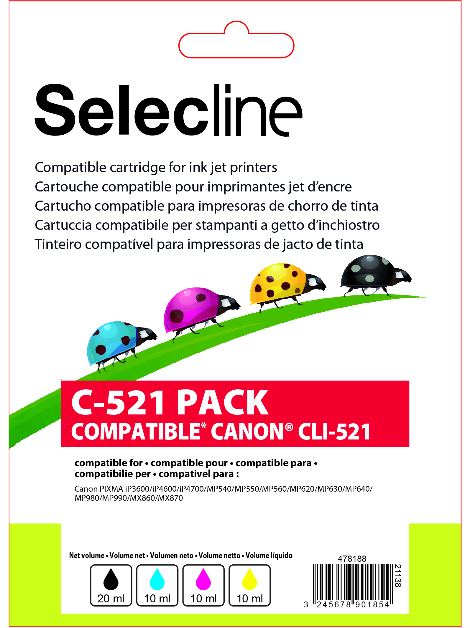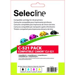 Cartouches d'encre SELECLINE compatibles avec les imprimantes CANON CLI521. Multipack noir / couleurs