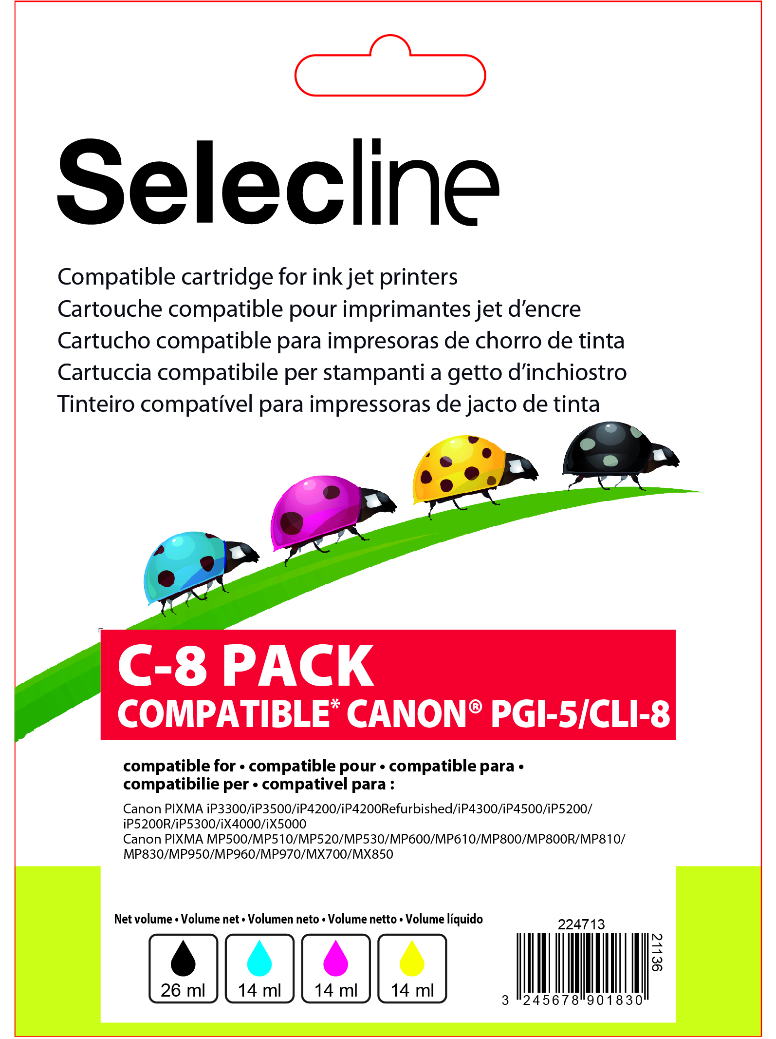 Cartouches d'encre SELECLINE compatibles avec les imprimantes CANON PGI5 et CLI8. Multipack noir / couleurs
