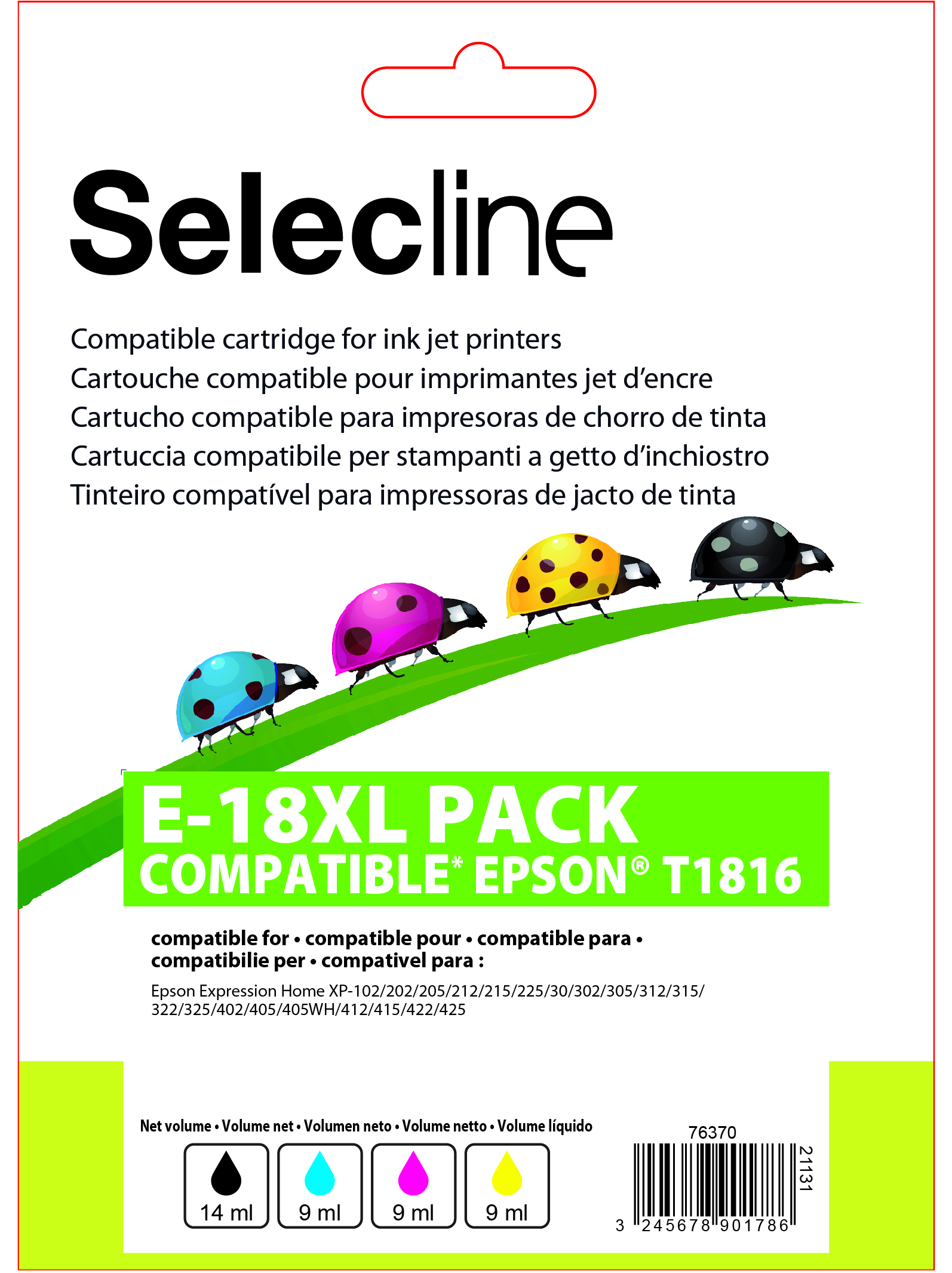 Cartouches d'encre SELECLINE compatibles avec l'imprimante EPSON T1816. Multipack noir / couleurs