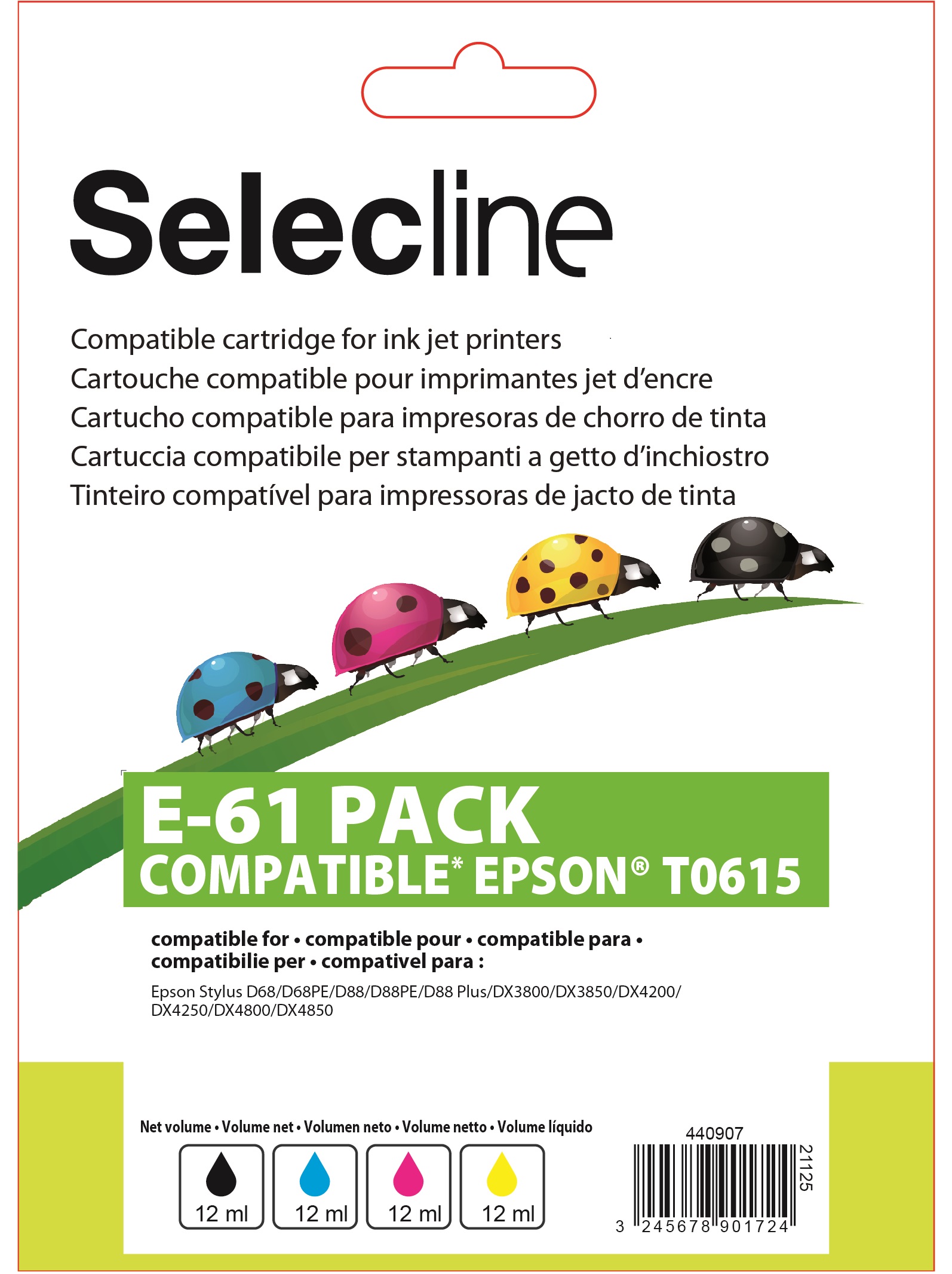 Cartouches d'encre SELECLINE compatibles avec l'imprimante EPSON T0615. Multipack noir / couleurs