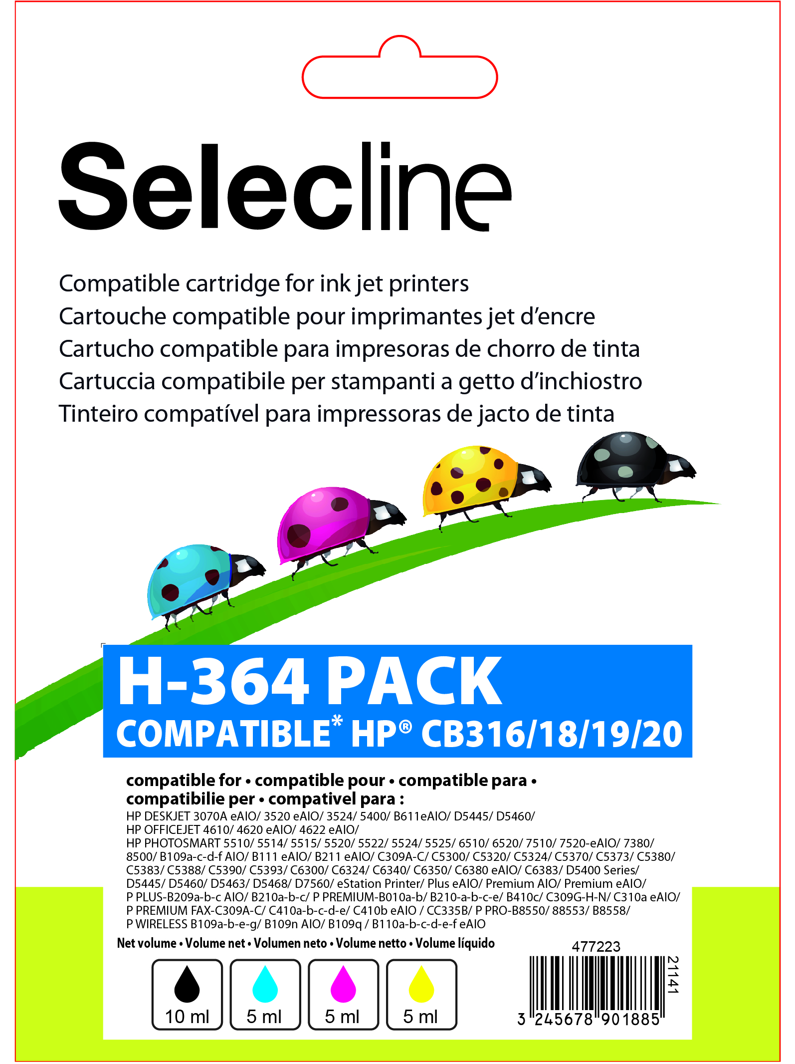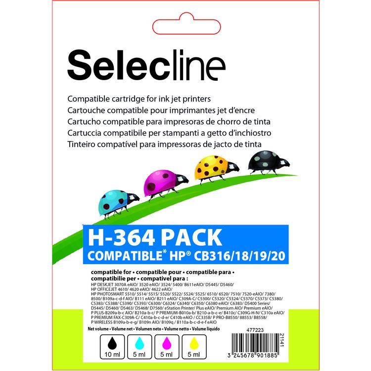 Cartouches d'encre SELECLINE compatibles avec les imprimantes HP CB316/18/19/20. Multipack noir / couleurs