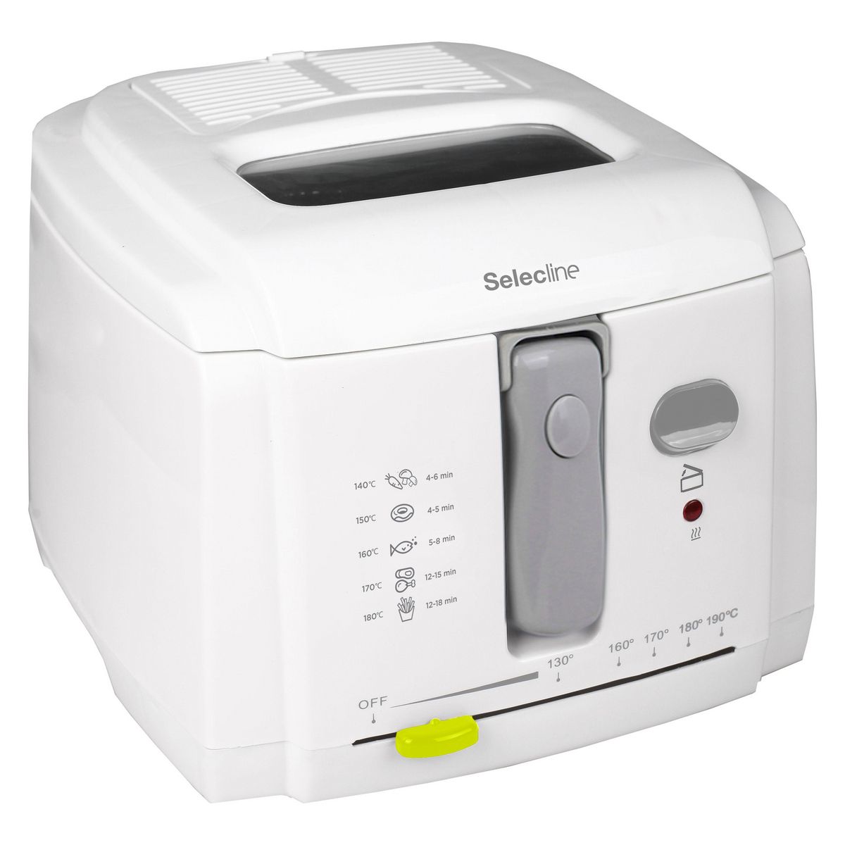 La friteuse électrique SELECLINE 60086982 est dotée d'une puissance de 1800 W, permettant de chauffer rapidement l'huile. Elle a une capacité d'huile de 2,5 litres et peut contenir jusqu'à 1 kg de frites. La température de la friteuse est réglable grâce à un thermostat. La poignée de la friteuse est pliable, ce qui facilite le rangement. Un hublot de contrôle permet de surveiller la cuisson des frites sans avoir à ouvrir la friteuse.