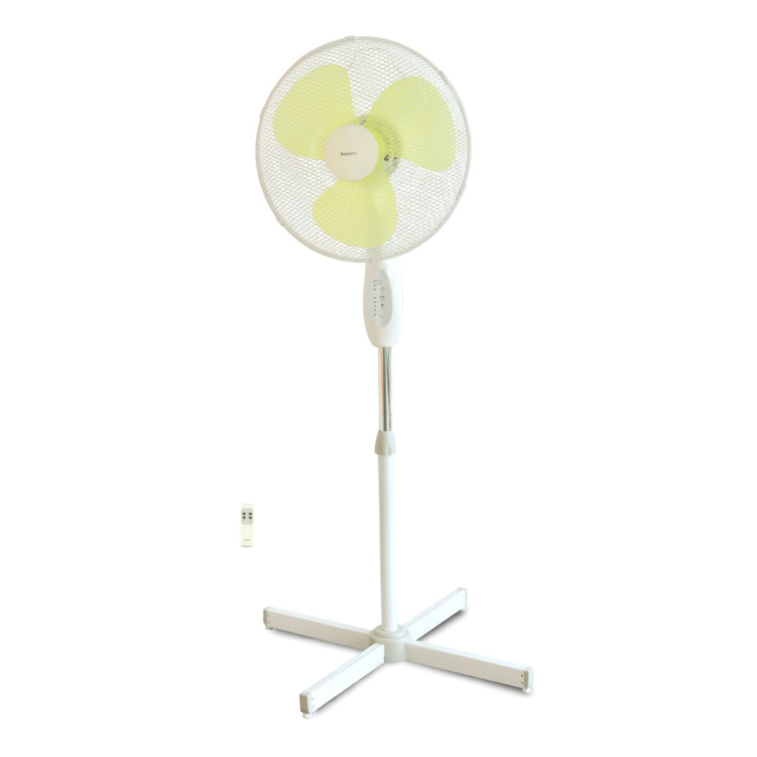 Grâce à ces 3 vitesses vous pourrez régler la puissance du souffle depuis votre canapé puisque ce ventilateur est équipé d'une télécommande! De plus une fonction oscillation a été installée pour que tout le monde puisse profiter de la fraîcheur procurée par ce ventilateur sur pied Selecline 888290.