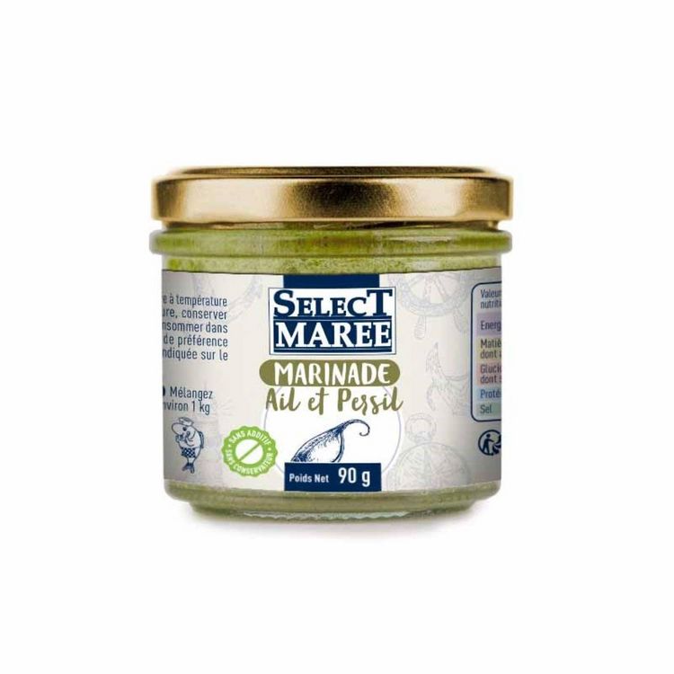 Préparation aromatisante prête à l’emploi. Le produit est à consommer froid mélangé à vos morceaux de poisson ou de viandes avant leur cuisson. Il est conditionné en verrine de 90 g stérile pour la vente au détail en rayon libre service conserve.