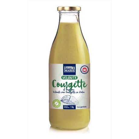 Soupe à base de légumes avec morceaux de saumon et saumon fumé. Elle est conditionnée en bouteille verre de 1 kg pour la vente au détail au rayon conserve.