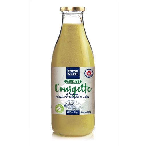 Ingrédients : Eau, courgettes 20 %, SAUMON 15% (dont SAUMON fumé 5 %), brocolis 13 %, pomme de terre 10 %, CREME fraiche, huile d'olive, épices et plantes aromatiques, sel. SANS ADDITIF.