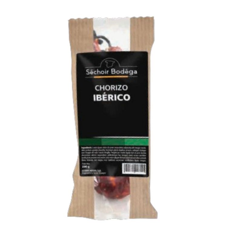 Ingrédients : Viande de porc ibérique, paprika, sel, lait en poudre, épices, antioxydant (E-316), conservateurs (E-250, E-252), boyau naturel de porc