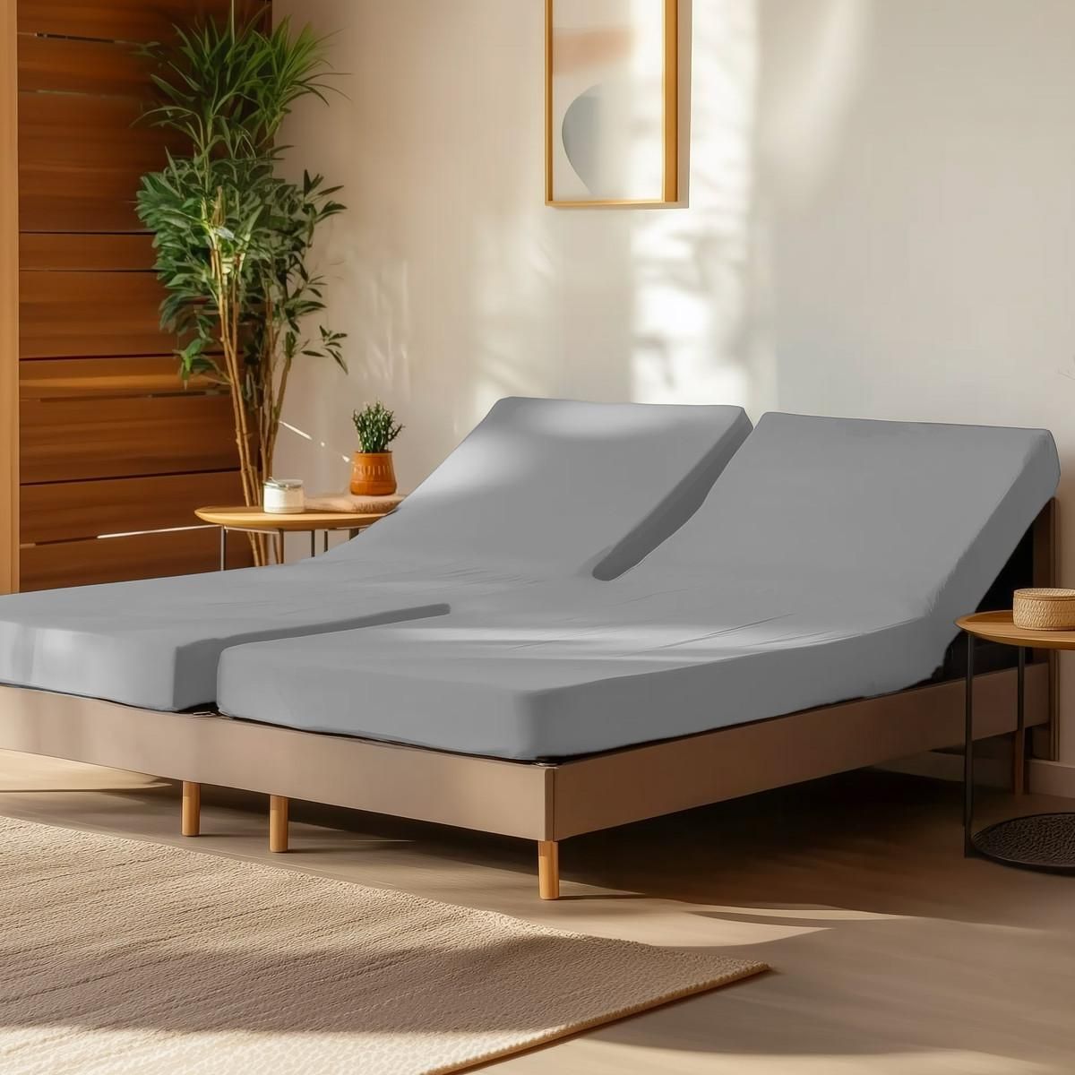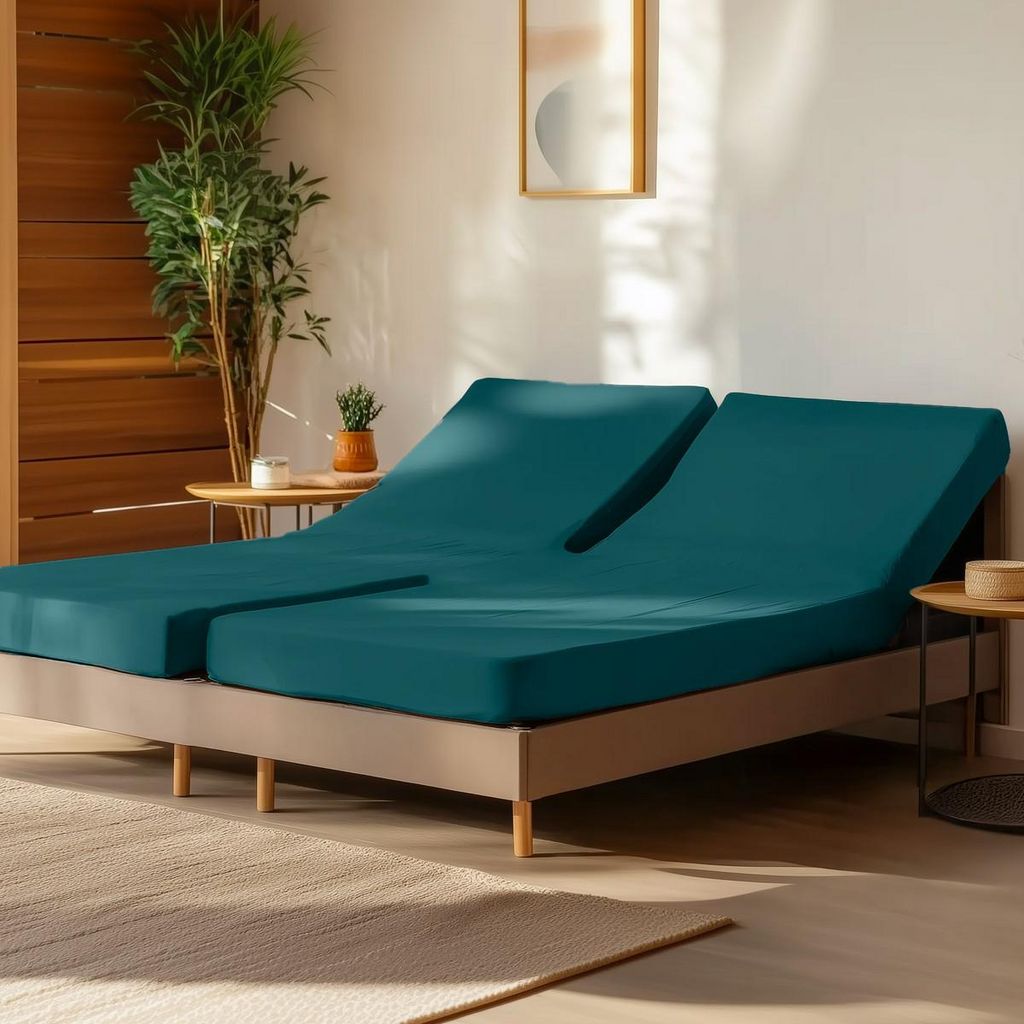 Ce drap housse est conçu pour les sommiers avec tête et pieds relevables pour 2 matelas articulés de 70 cm, 80 cm ou 90 cm de largeur chacun.