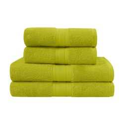 Découvrez le lot de 4 pièces d'éponge de bain composé de 2 serviettes de toilette 50x100cm et 2 draps de bain 70x140cm. Pour se sécher les mains et les cheveux, ou en sortie de bain, ce pack convient à tous vos besoins pour votre salle de bain. Il est constitué d'une éponge tissée en 550 gr/m² ce qui lui procure une excellente absorption et une douceur extrême. Un pack idéal à offrir ou s'offrir !