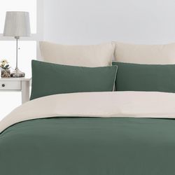 La housse de couette DOZMARY en 100% percale de coton de 80 fils/cm² arbore un style bicolore tout en souplesse. Réversible, elle s'adapte au style que vous préférez. Elle est disponible en plusieurs versions bicolores. Les tailles disponibles sont : 140x200cm/200x200cm/240x220cm et 260x240cm.