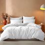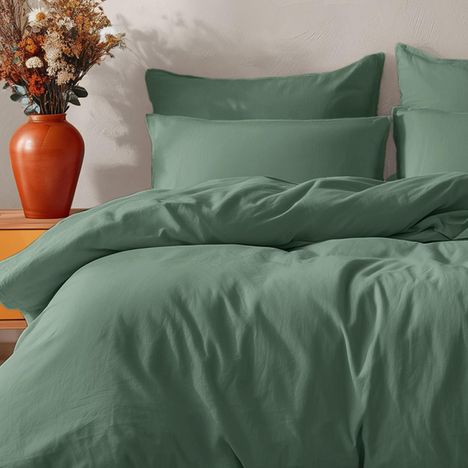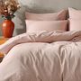 Cet ensemble de 3 pièces se compose d'une housse de couette avec choix de dimensions (140x200 cm, 200x200 cm, 240x220 cm, 260x240 cm) et de 2 taies d'oreiller rectangles 50x70 cm.