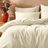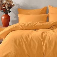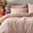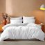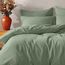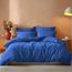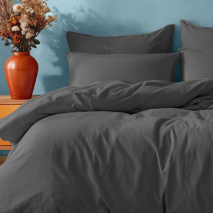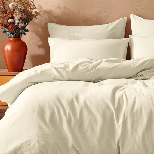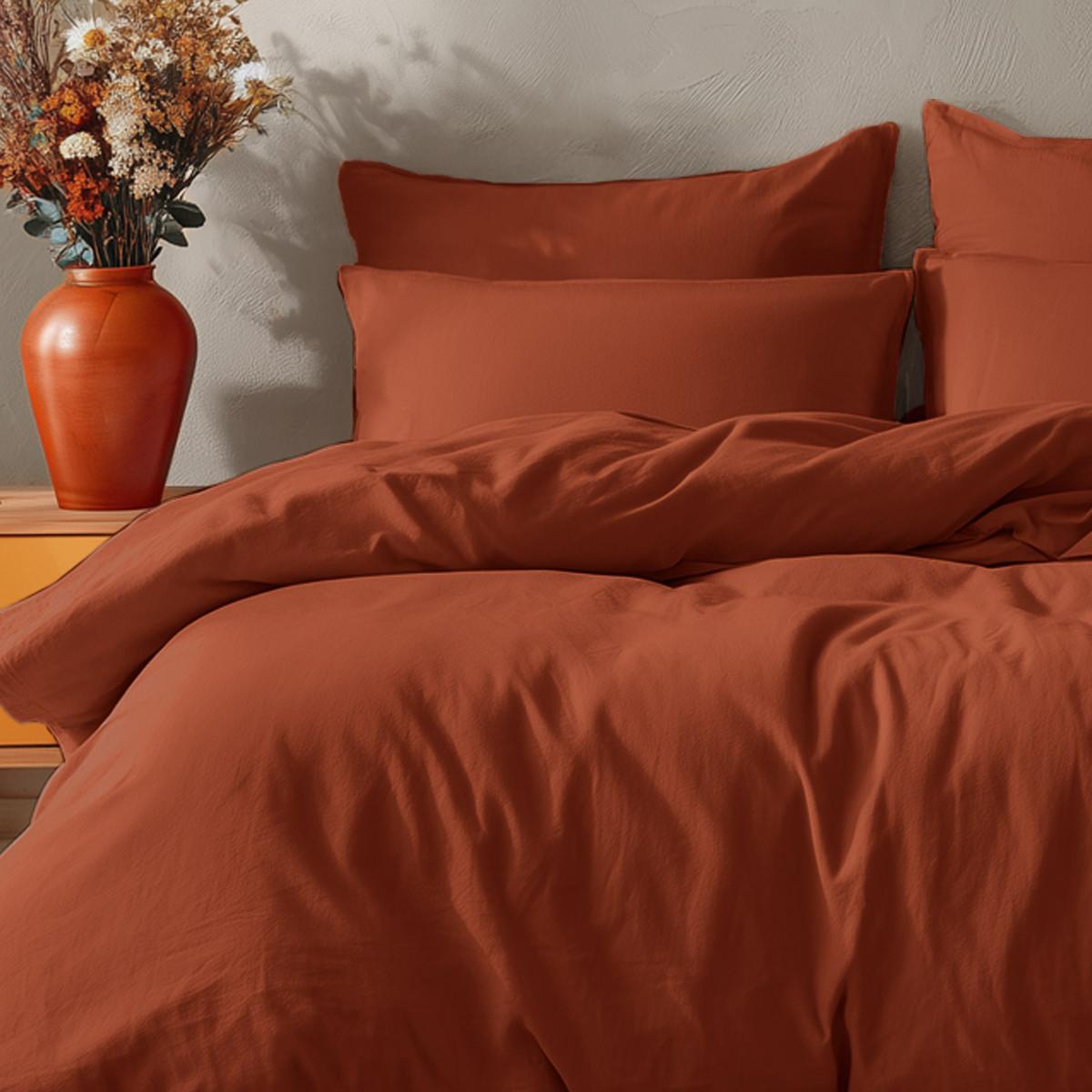 Cet ensemble de 3 pièces se compose d'une housse de couette avec choix de dimensions (140x200 cm, 200x200 cm, 240x220 cm, 260x240 cm) et de 2 taies d'oreiller carrées 65x65 cm.