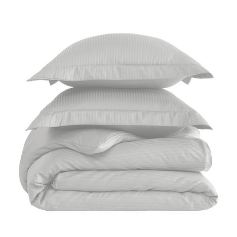 Parure housse de couette rayée satin + 2 taies 50x70 cm VERSALUXE