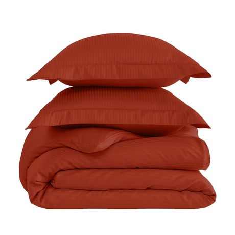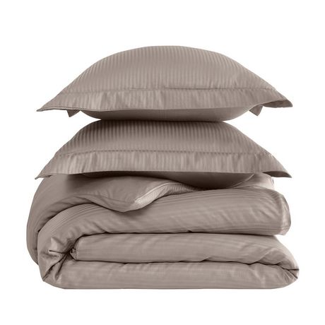 Parure housse de couette rayée satin + 2 taies 65x65 cm VERSALUXE