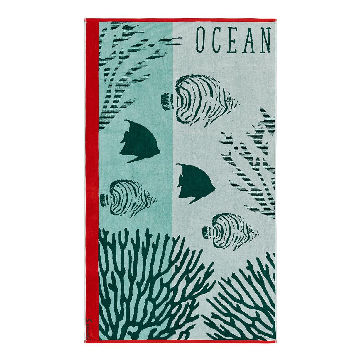 Osez et plongez à la découverte du grand bleu avec la serviette de plage BLUE OCEAN. Aux motifs imprimé de poissons et coraux, la serviette de plage jacquard BLUE OCEAN 100% coton velours est le moyen le plus original de faire part de votre goût pour la nature aquatique ! Le drap de plage jacquard BLUE OCEAN est disponible en 100x180 cm.