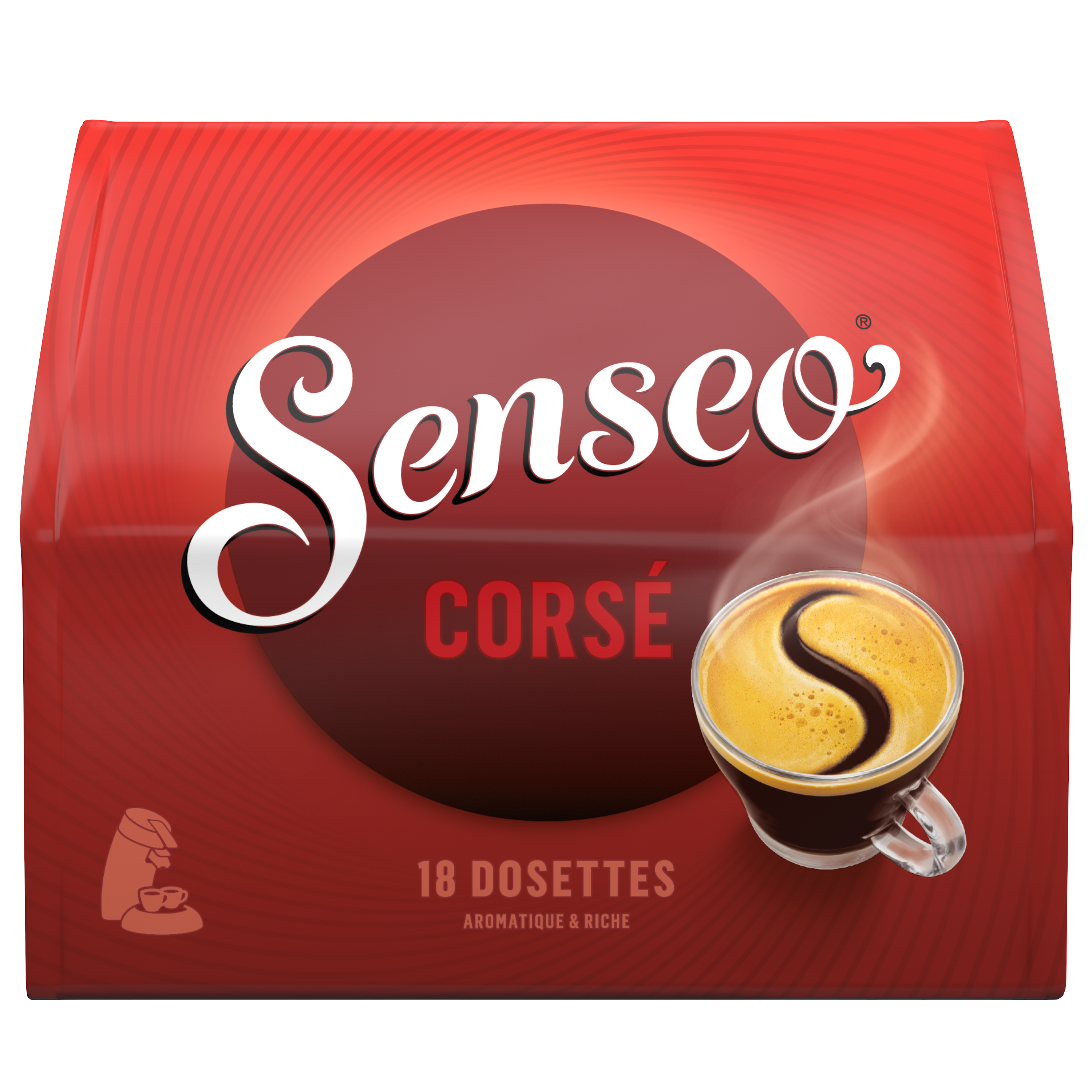 Café moulu en dosettes filtre Plongez dans l'arôme riche et intense du café SENSEO® Corsé, un mélange de grains arabica et robusta intensément torréfiés, recouvert d'une délicate mousse. SENSEO® vous propose un café 100% certifié UTZ et des dosettes de café compostables industriellement. Ne pas jeter dans la nature. Le label « Certifié UTZ » garantit que le café contenu dans les dosettes de café SENSEO® a été cultivé et récolté de manière durable d’un point de vue social et environnemental.