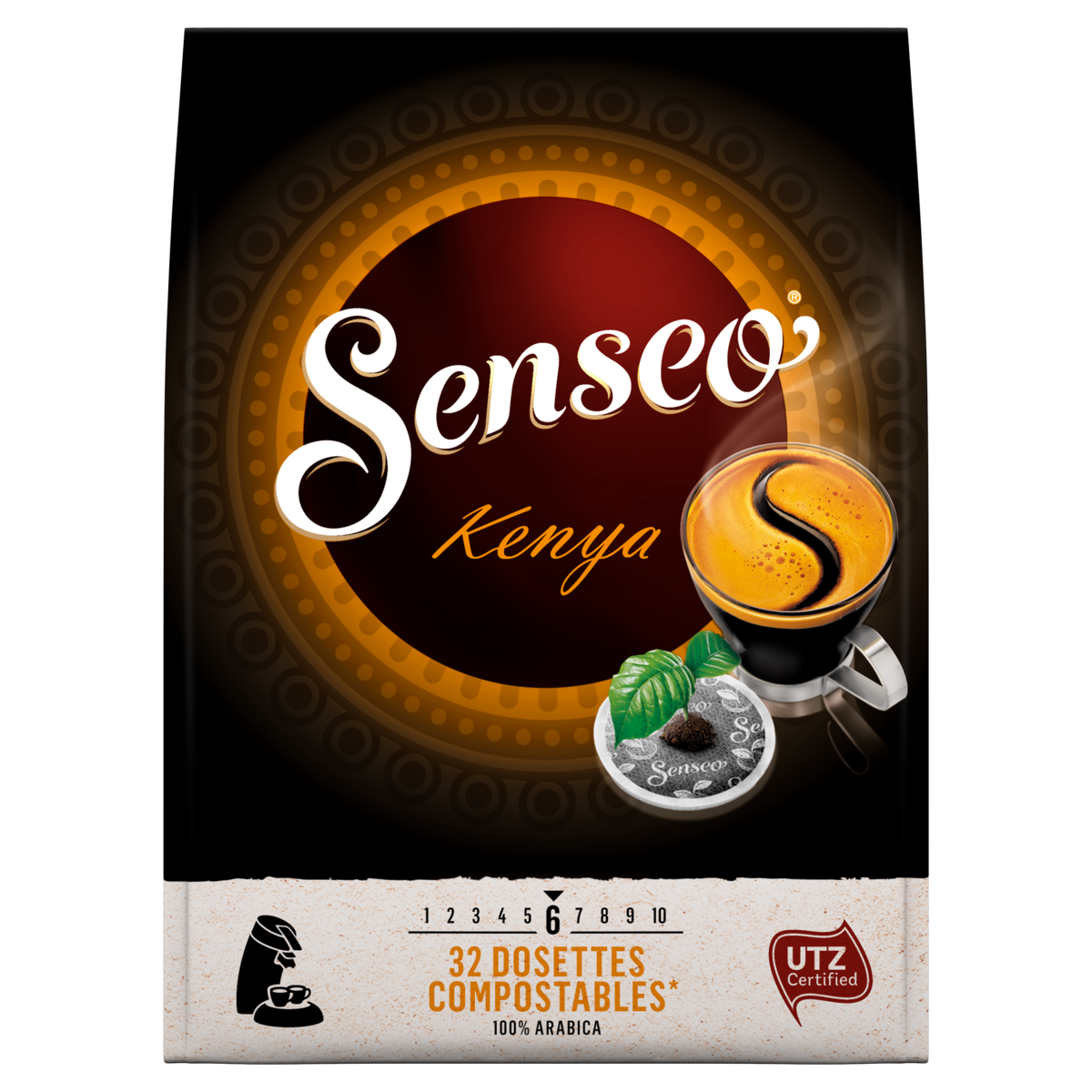 Un mélange arabica moyennement torréfié, à l'arôme raffiné et au caractère complexe, issu des plateaux fertiles du Kenya; Faites de chaque jour une journée d'exception grâce à son goût sublime et à son arôme édifiant, inspirés par les vastes étendues de la savane équatoriale. SENSEO® vous propose un café 100% certifié UTZ et des dosettes de café compostables industriellement. Ne pas jeter dans la nature. Le label « Certifié UTZ » garantit que le café contenu dans les dosettes de café SENSEO® a été cultivé et récolté de manière durable d’un point de vue social et environnemental. Café moulu en dosettes filtre