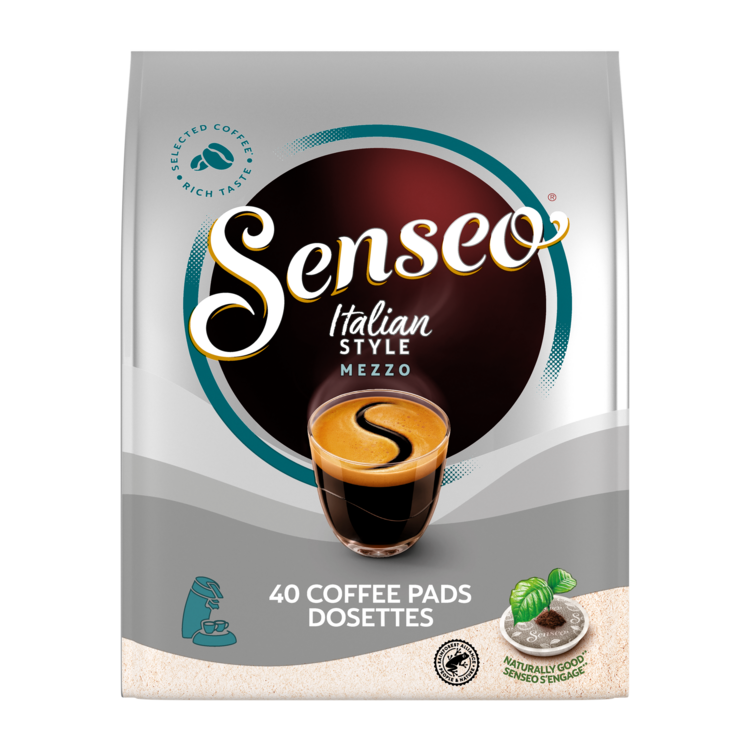 Café moulu en dosettes filtre SENSEO® Mezzo à l’italienne vous offre un café équilibré et aromatique, inspiré de la tradition des cafés italiens. Un café avec du corps qui ravira les amateurs de café expresso, certifié 100% UTZ. SENSEO® vous propose un café 100% certifié UTZ et des dosettes de café compostables industriellement. Ne pas jeter dans la nature. Le label « Certifié UTZ » garantit que le café contenu dans les dosettes de café SENSEO® a été cultivé et récolté de manière durable d’un point de vue social et environnemental.