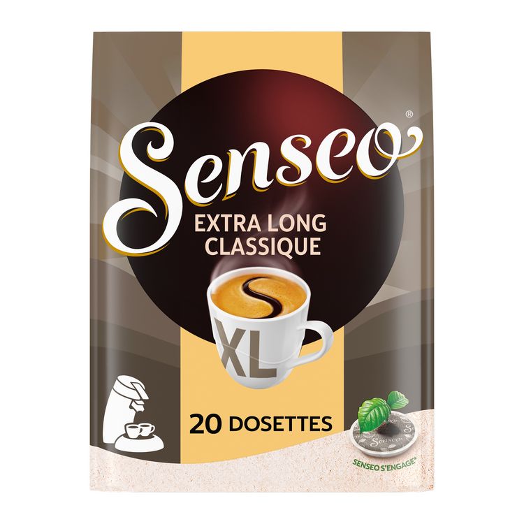 Retrouvez tout l’équilibre de SENSEO® Classique dans un café deux fois plus long, pour un réveil tout en douceur. Un mélange de grains de café torréfiés à cœur qui donne à ce café extra long son caractère parfaitement équilibré. A utiliser avec votre porte-dosette double et le bouton 2 tasses. SENSEO® vous propose un café et des dosettes de café compostables industriellement. Format : sachet de 20 dosettes souples. Couleur du sachet : marron et jaune.