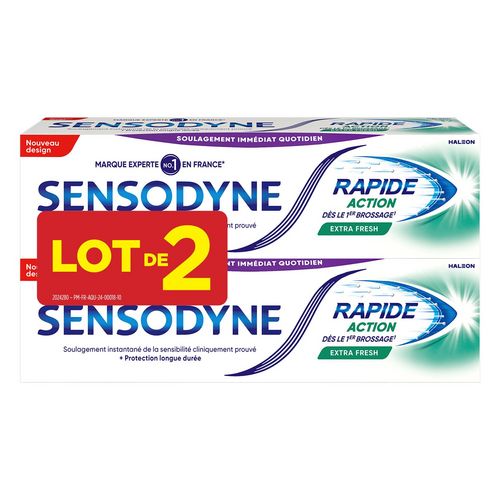 Sensodyne Rapide Action Extra Fresh est cliniquement prouvé pour soulager rapidement les dents sensibles. Sa formule unique agit rapidement en formant une barrière protectrice sur les zones sensibles de la dent. Sensodyne permet un soulagement dès le premier brossage et une protection durable et renforcée à chaque brossage.