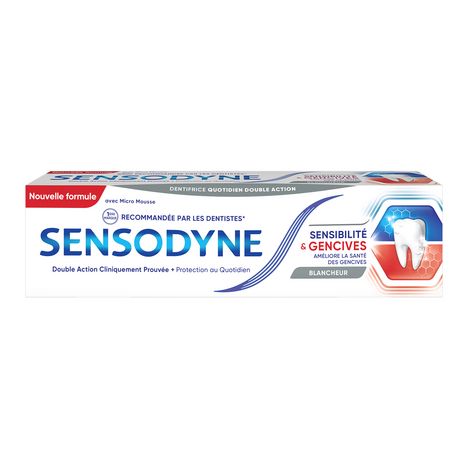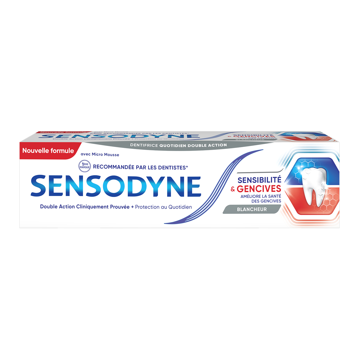"Sensodyne Sensibilité & Gencives est cliniquement prouvé pour soulager la sensibilité dentaire et améliorer la santé des gencives. Il forme une barrière protectrice sur les zones sensibles pour soulager efficacement la sensibilité dentaire. Il favorise l'élimination des bactéries de la plaque pour aider à réduire les problèmes de gencives. Il existe maintenant un dentifrice spécialisé pour faire face à ces 2 problèmes."